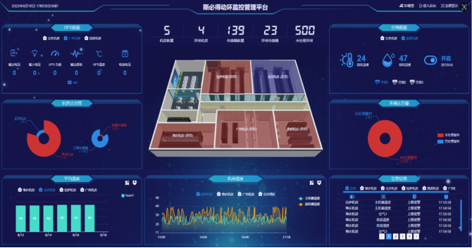 系统通过传感器、协议转换器等设备,实时采集配电、UPS、空调、温湿度、漏水等关键参数,支持多协议接入(如RS485等),实现设备状态与环境数据的全面监控。一旦数据超出预设阈值,触发声光告警、电话、APP、短信等通知管理人员、自动控制等联动功能,降低故障响应时间。